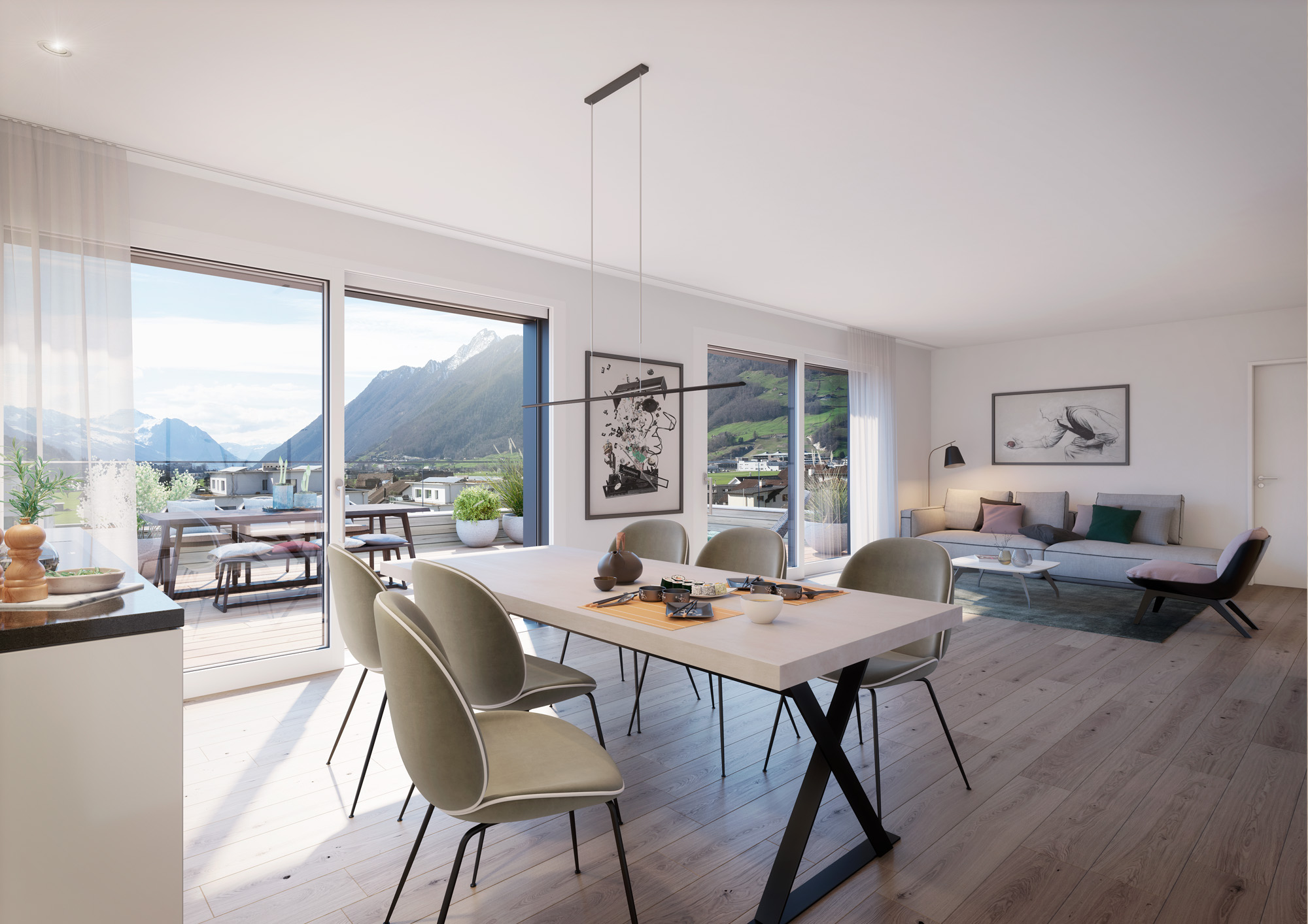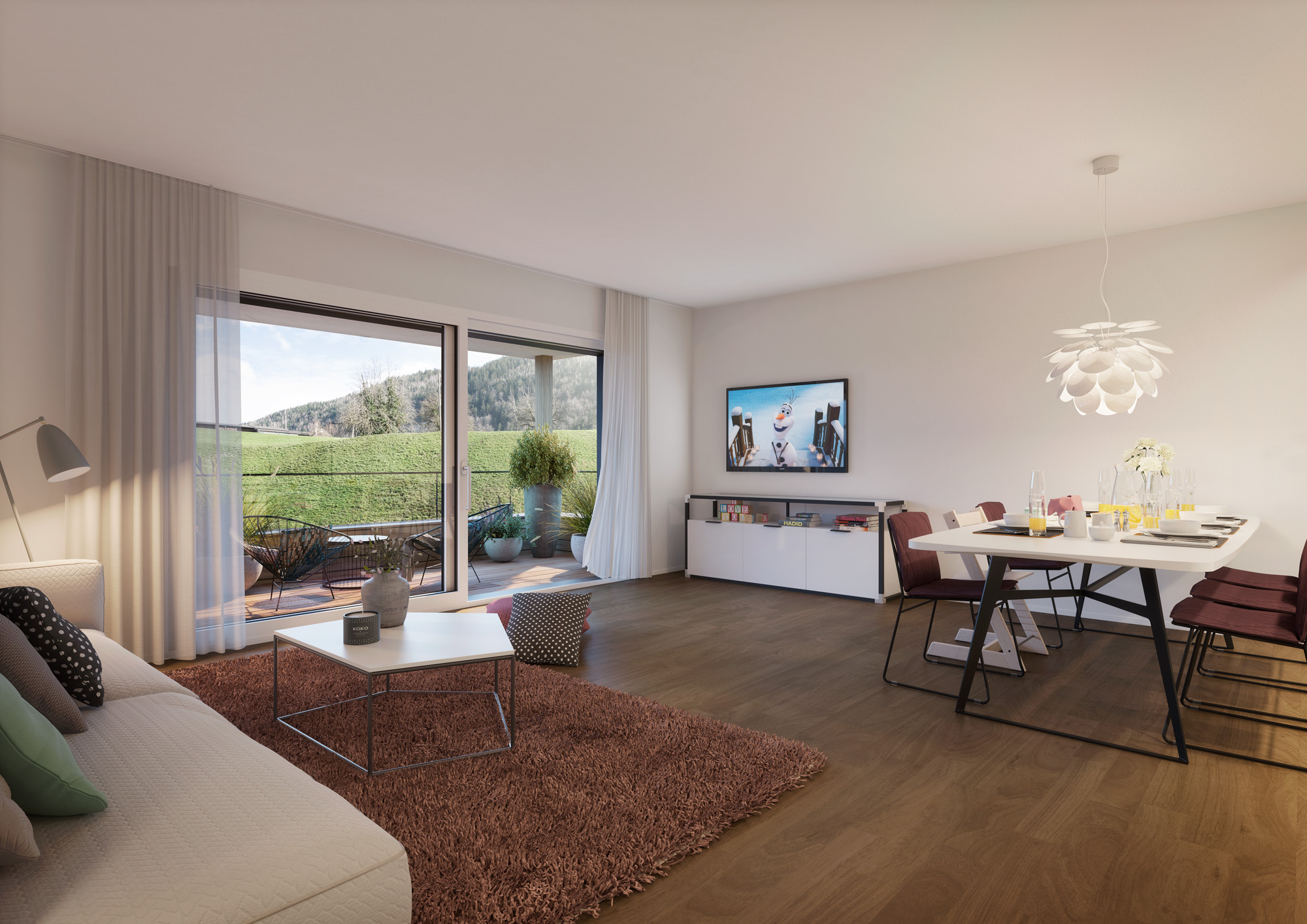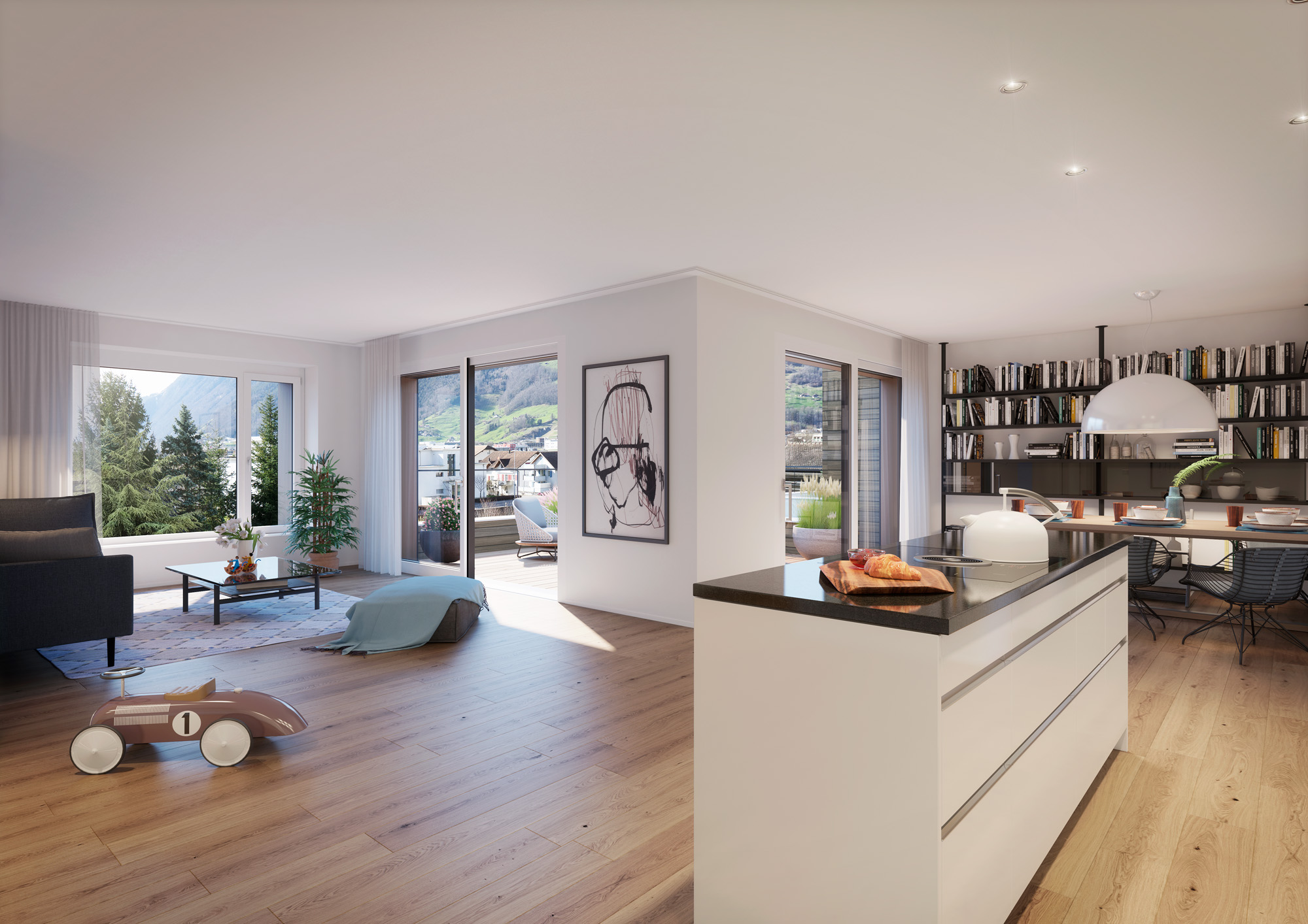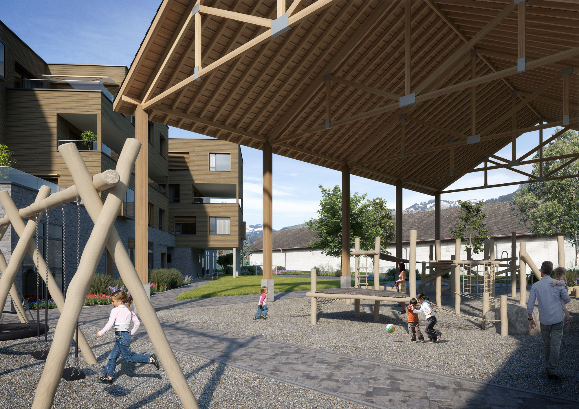 Das Neubauprojekt liegt an sonniger, grüner Lage und lädt mit dem riesigen Spiel-, Begegnungs- und Erholungsplatz im Innenhof vor allem Familien, aber auch Paare und Singles zu einem einzigartigen Wohnerlebnis ein. Der moderne Ausbau mit allem technischen Komfort, das stimmige Design und die edlen Materialen der 18 Eigentumswohnungen schaffen eine repräsentative Wohnatmosphäre, die zum Geniessen und Wohlfühlen einlädt.