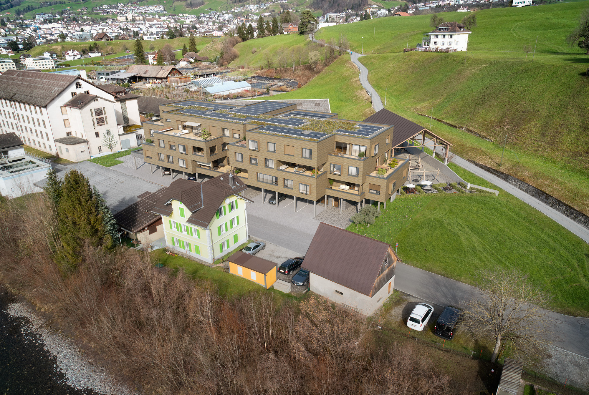 Das Neubauprojekt liegt an sonniger, grüner Lage und lädt mit dem riesigen Spiel-, Begegnungs- und Erholungsplatz im Innenhof vor allem Familien, aber auch Paare und Singles zu einem einzigartigen Wohnerlebnis ein. Der moderne Ausbau mit allem technischen Komfort, das stimmige Design und die edlen Materialen der 18 Eigentumswohnungen schaffen eine repräsentative Wohnatmosphäre, die zum Geniessen und Wohlfühlen einlädt.
