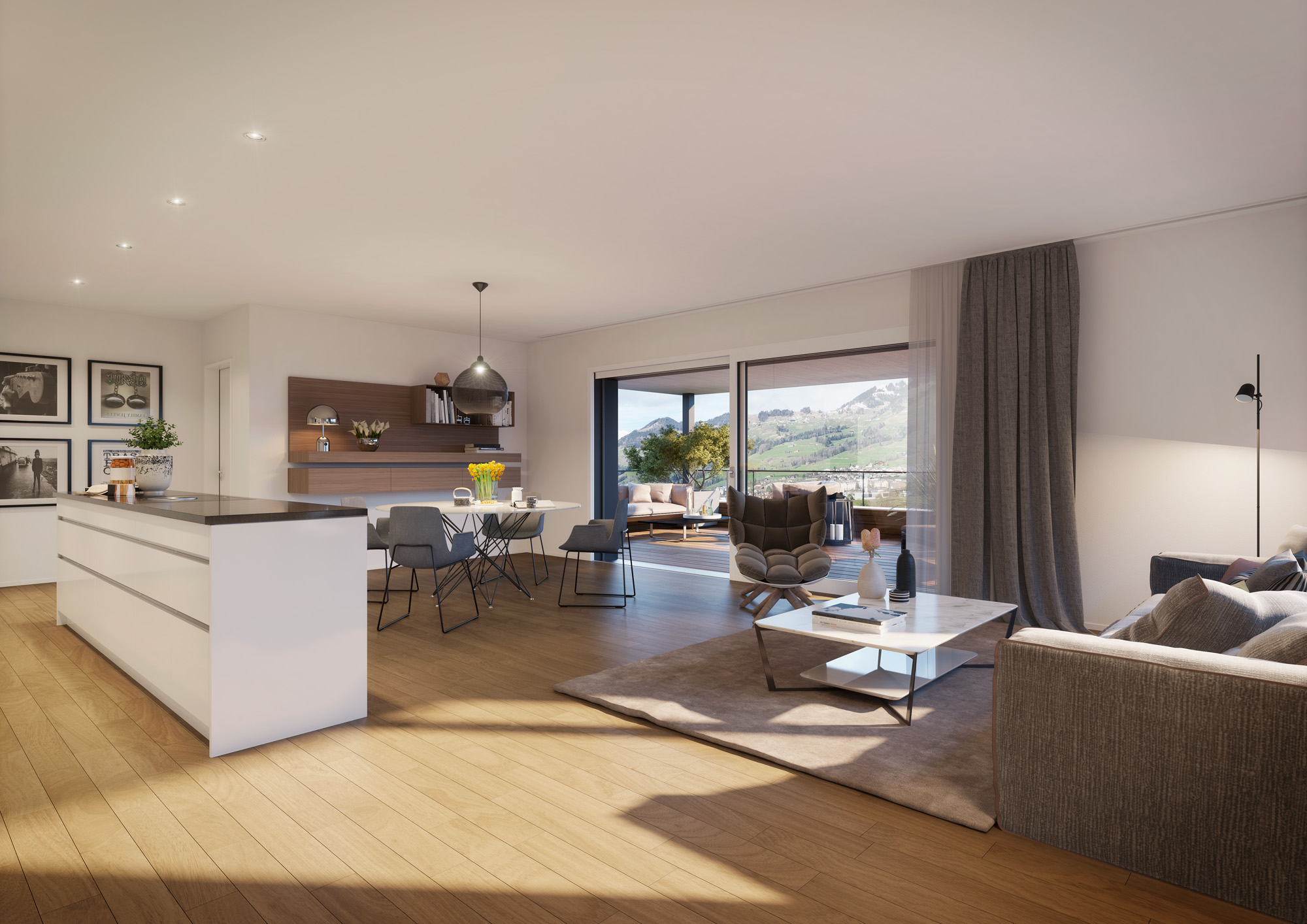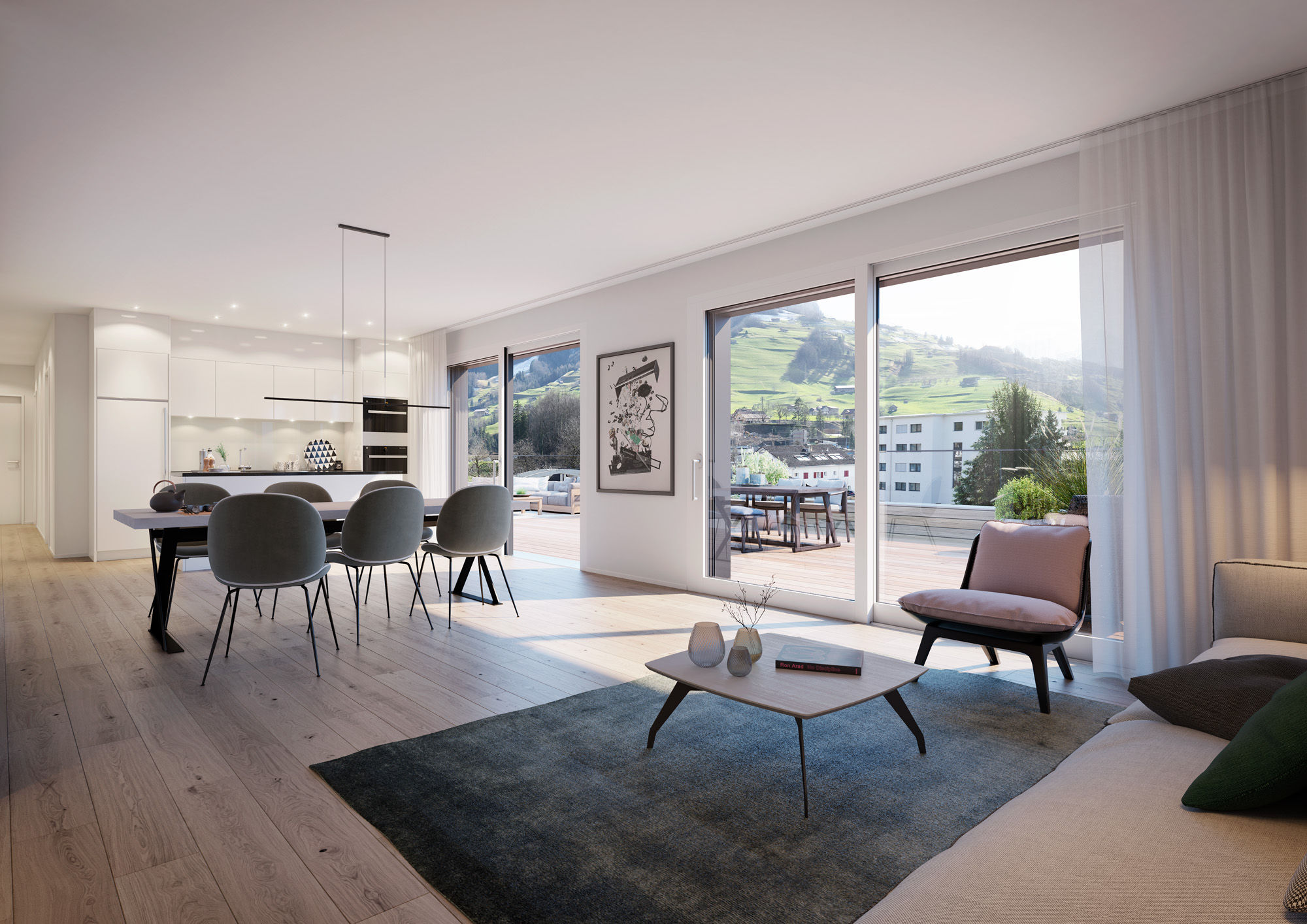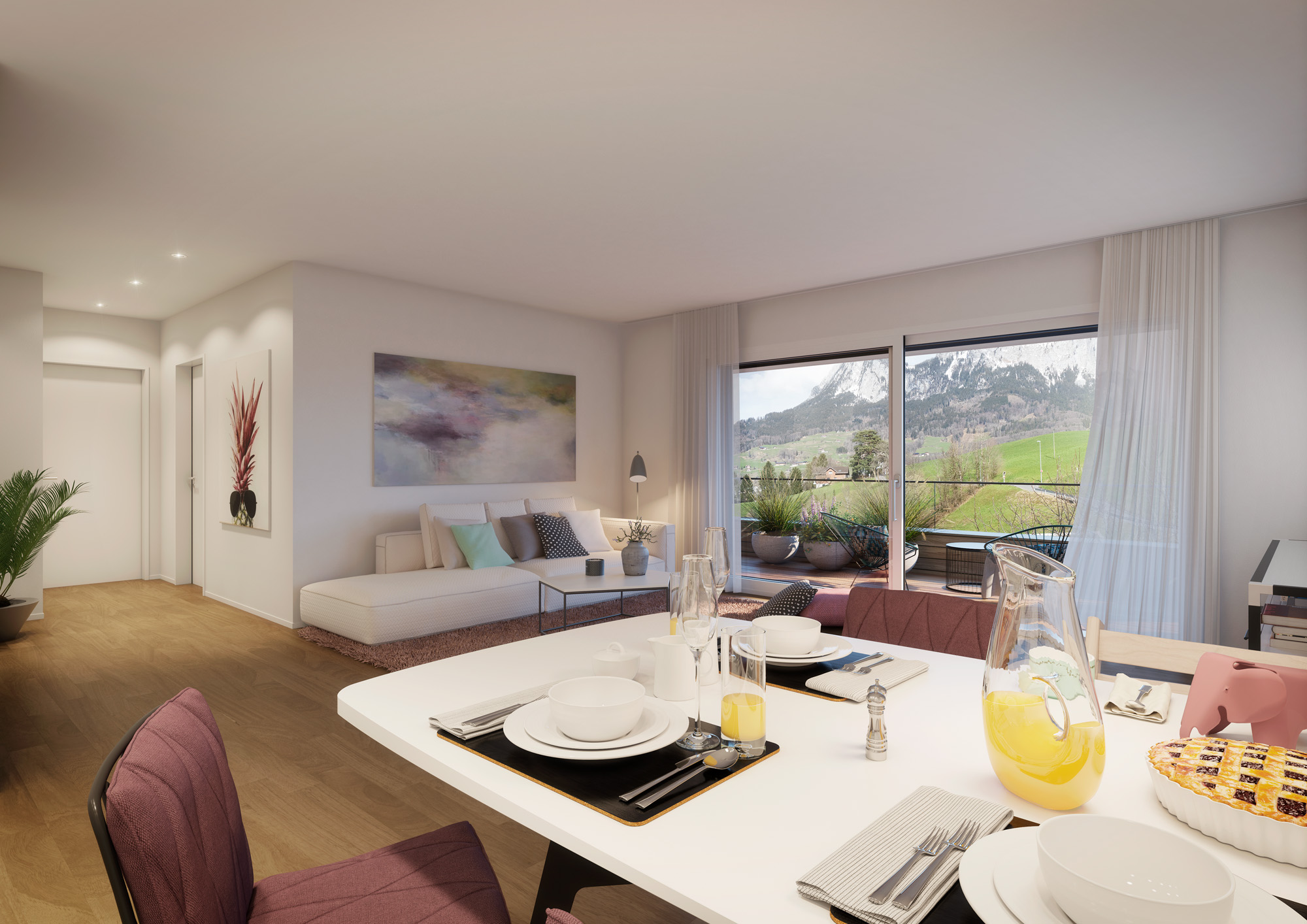 Mit der Liegenschaft «Mythisch» entstehen in der idyllischen Schwyzer Gemeinde Ibach am Fusse des Mythen 18 grosszügige Eigentumswohnungen.